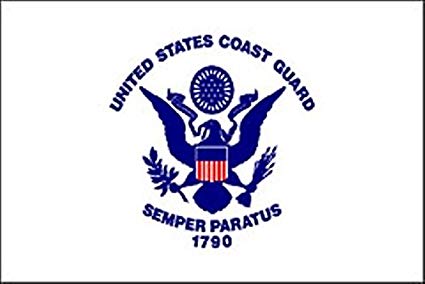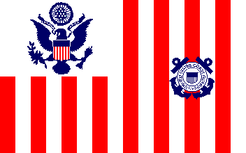 The flag on the left is the formal Coast Guard Flag. Simple but beautiful. The flag on the right is the Coast Guard Ensign. It is flown underway on every Coast Guard vessel, 24/7. It truly marks the U.S. Coast Guard and is never carried in a parade, it signifies Law Enforcement.